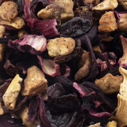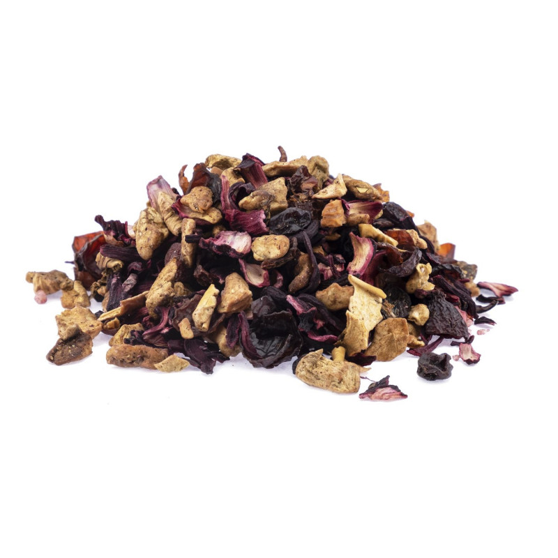 Manzana, hibisco, escaramujo, pasas, papaya.