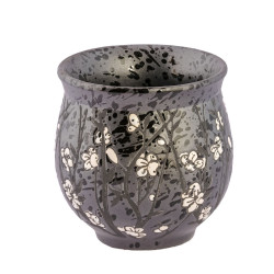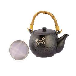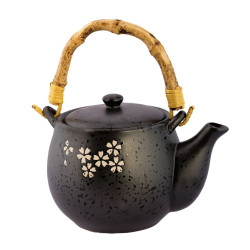 El diseño es novedoso y, sobre fondo oscuro, tiene detalles de flores en colores claros. La tetera tiene una manija diferente, destacada, que combina perfectamente con su diseño.