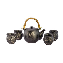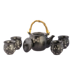 Este juego de té combina una tetera con cuatro pocillos para disfrutar de un momento cálido con otras personas. Su material es de porcelana, resistente y de calidad.