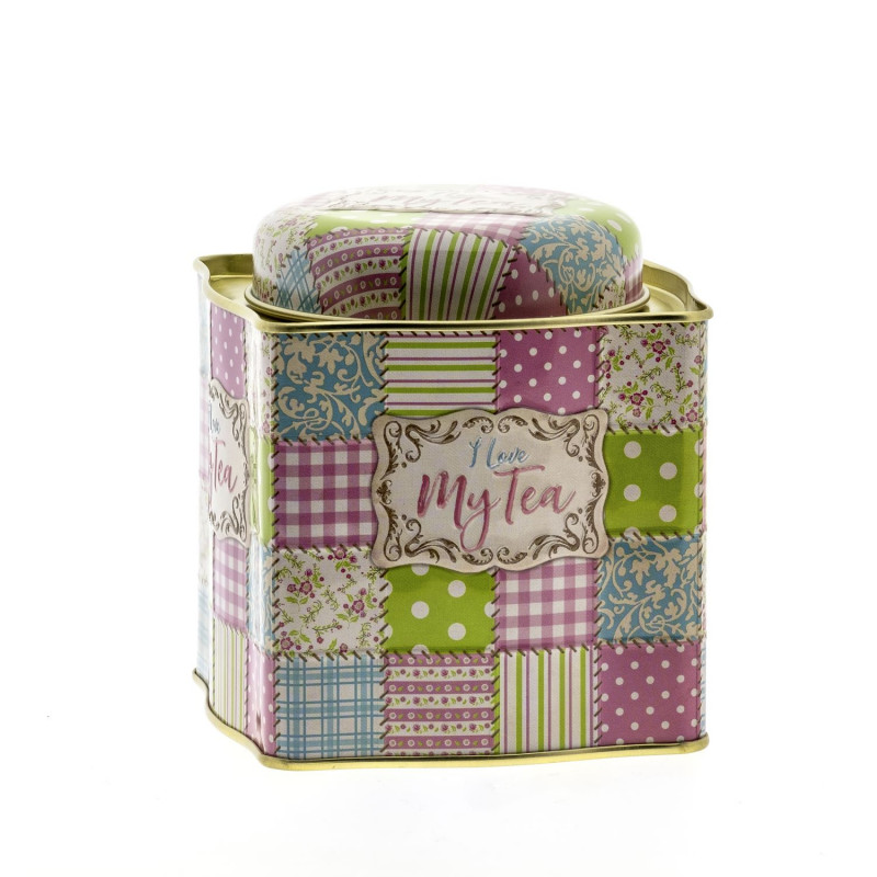 Recipiente metálico para conservar té dedicado especialmente a los apasionados por esta bebida, tal como la frase que aparece en su decoración lo indica: I love my tea. Su utilización es fundamental para la correcta conservación.