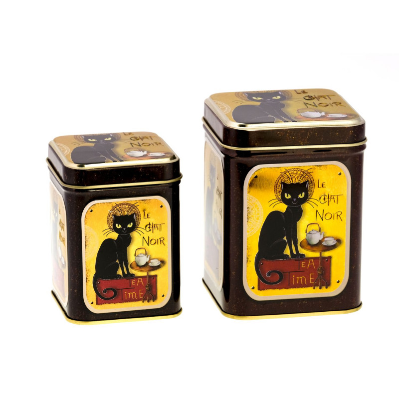 "El Gato Negro" de París es una de las más famosas piezas de arte parisinas. El cartel expone a un gato negro sobre un fondo amarillo. Nuestros recipientes con este estilo tuvieron una intervención artística, con el objetivo de generar un nuevo diseño. Es así que en el cartel rojo sobre el que está apoyado el gato, típico de la obra, se leerá ahora "tea time" u hora del té, en español.