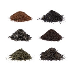 té verde sencha, té rojo pu erh, té blanco mao feng, té negro English breakfast, rooibos oriental, té azul oolong.