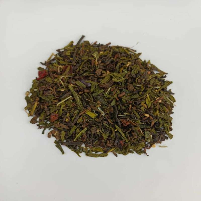Té rojo, té verde, remolacha, ginseng, cola de caballo, guaraná y aromas.